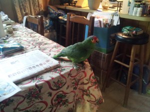 He is really an amazing bird and has taught all of us here so much about animal behavior and their personalities. These fascinating creatures are more than just a pet. They infuse themselves into our lives especially one that can talk back to you. Though my favorite line he has every learned has been,” Mom where where where?” which is his way of asking where am I in the house if he does not see me. Does he mimic us…absolutely. But with that mimicking he is learning to interact with us on a different level as he learns when to use certain phrases at the right time.